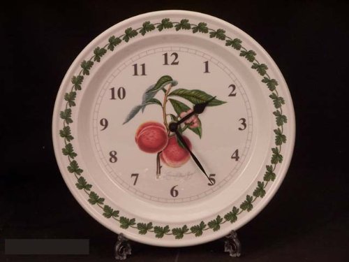 Make every minute spent in the kitchen an ode to Pomona, the ancient goddess of fruit, with this battery-powered wall clock. Ten inches wide, trimmed around the edges with foliage of summer and autumn fruits, and featuring a large depiction of Royal George peaches at the center, this clock keeps dependable time while acting as inspiration to create tasty delicacies in the kitchen. The clock is made of hand-decorated earthenware and includes a rotary hour and minute hand; the hours 1-12 are noted clearly in large, black numbers and hash marks sub-divide each hour into 5 12-minute increments. A battery is not included. Portmerion guarantees their products for construction defects and customer satisfaction. --Jeff Dalto