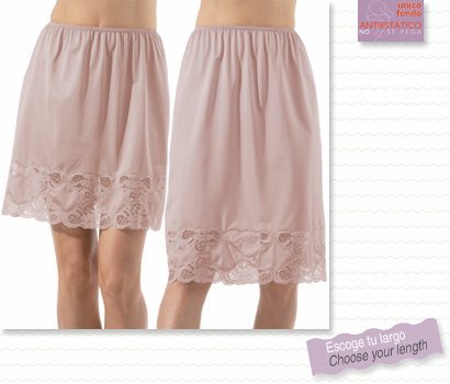 Product DescriptionClassic Half slip with Lace available in 18" or 24" length. Made with Anti- cling nylon which allows the fabric to stay static free.