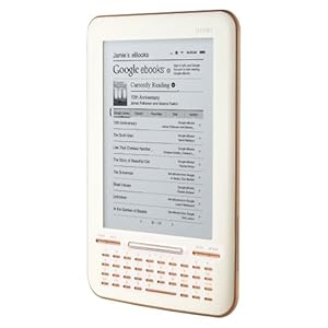 The Iriver Story HD weighs only 7.3 ounces (207 grams) and less than 0.36 cm thick. Long battery life lasts up to six weeks on a single charge (with Wi-Fi off) or up to 14,000 page turns. Both 802.11 b and g Wi-Fi compatible.
